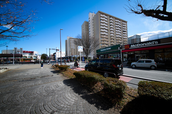 駅を出ると広い広場とよく見るマックなどの飲食店。