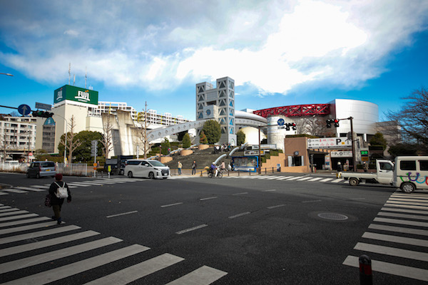 また駅を出て左側にはなんとも特徴的な建物「神奈川県立地球市民かながわプラザ」があります。